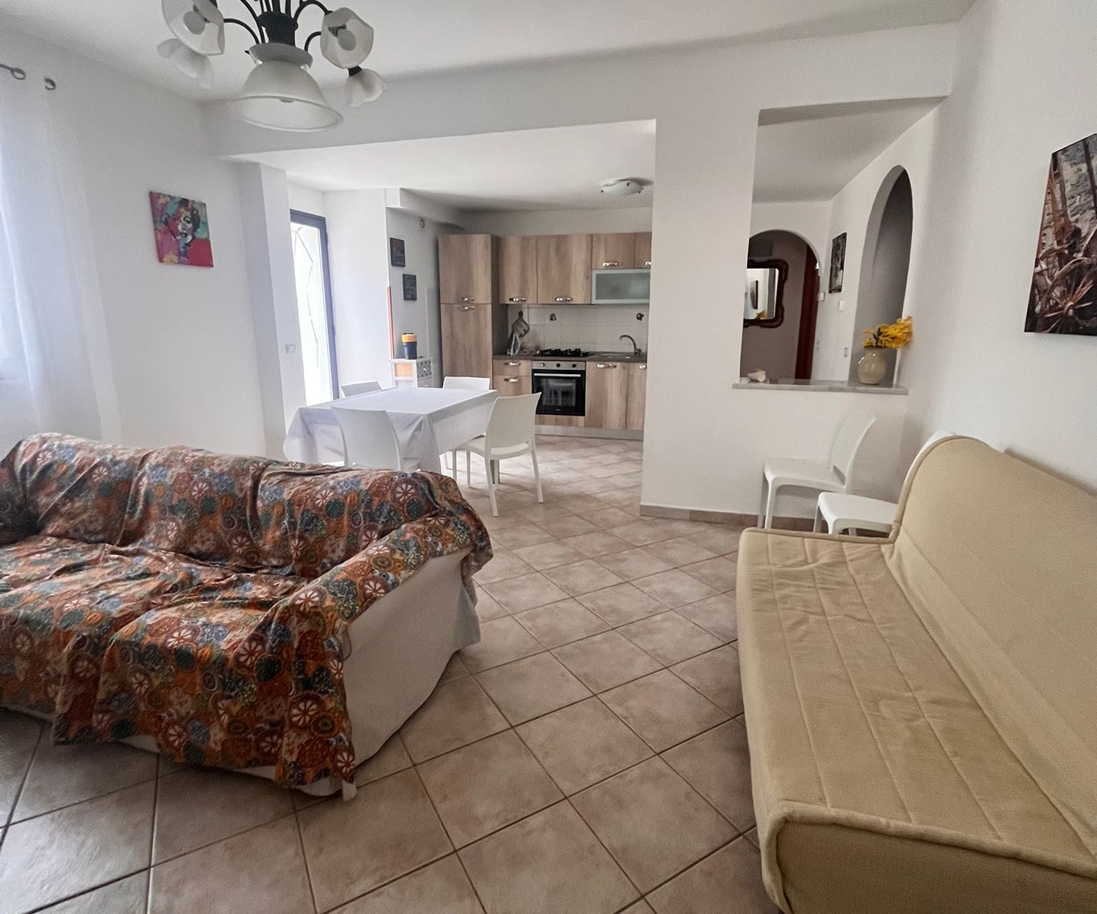 L’immobile, di 130 mq è internamente composto da ampia cucina-soggiorno due camere da letto, cameretta, due bagni, di cui uno con vasca e uno con doccia, lavanderia.